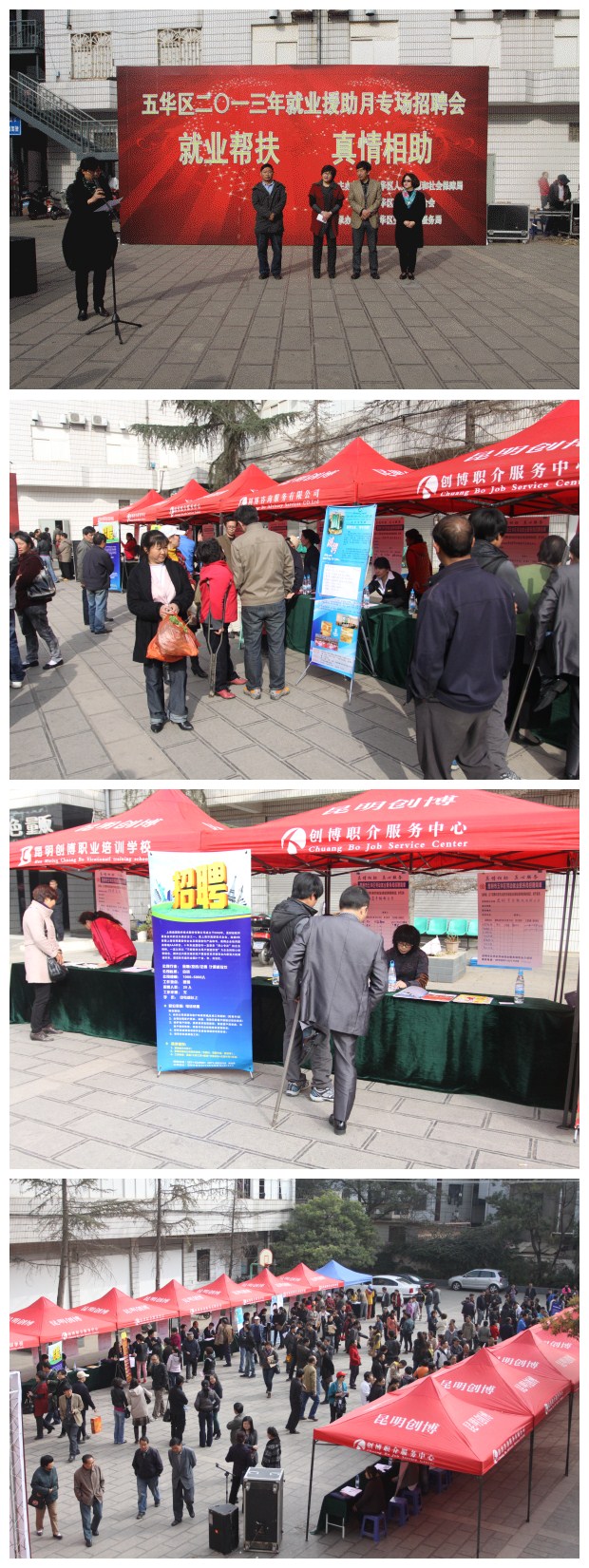 为全面贯彻落实党的十八大和省委九届四次全会精神,改善就业困难人员民生,促进就业困难人员就业,由区人力资源和社会保障局、区残疾人联合会主办,区劳动就业服务局承办的“五华区2013年就业援助月专场招聘会”于2月22日上午在五华区残联大院内举行。区人大常委会副主任、区人力资源和社会保障局局长余彦,区残疾人联合会理事长黄兴发、副理事长曾庆上,区劳动就业服务局局长胡湘蓉、副局长王军,出席了招聘会启动仪式。