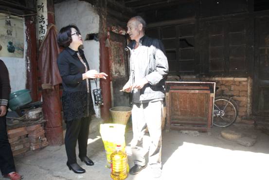 面对异常干燥,气温持续偏高,降雨量较少,水库坝塘蓄水量大幅度减少的大旱灾严峻形势,区残联开展抗旱保供水活动,为抗旱结队帮扶大村五组解决好受灾群众的生产生活困难。五华区残联于2013年4月3日上午在黄兴发理事长带领下入户到大村五组的9户贫困群众和残疾人家中,听取了困难群众受灾情况和存在的困难,每户送去慰问品(1 袋10 公斤的大米及1 瓶5公斤的油)及慰问金200元,共计3100元的物资,切实缓解了贫困残疾人群体因旱灾带来的粮食欠收等生活困难。区残联还将结合实际从人、财、物等方面帮扶结队村组克服当前旱情造成的生产生活困难。