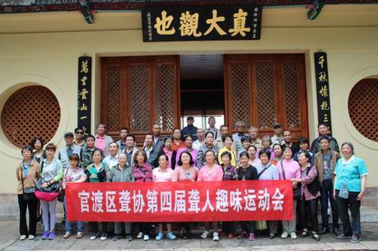 官渡区第四次聋人趣味运动会在大观楼公园举办。全区共50余名聋人代表参加了运动会。本次运动会共设了三个比赛项目:羽毛球比赛、飞镖比赛,集体舞。经过一天紧张和热烈的比赛,参赛队员们赛出了成绩,同时也赛出了友谊赛出了风格,体现了团结互助的协作精神。比赛结束后,全体参加人员合影留念,区聋协主席还为每名参与比赛的队员颁发了奖品,比赛在和谐的气氛中圆满结束。活动结束后,大家一起游览了大观公园。
