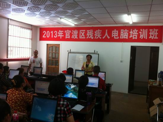 为提高残疾人平等参与社会生活的竞争力,进一步拓宽我区残疾人就业渠道,多形式促进残疾人就业。应残疾人的实际需求培训项目,官渡区残联于2013年7月2日组织开展了残疾人电脑中级知识培训班,参加培训的残疾人41人,培训期为15天。