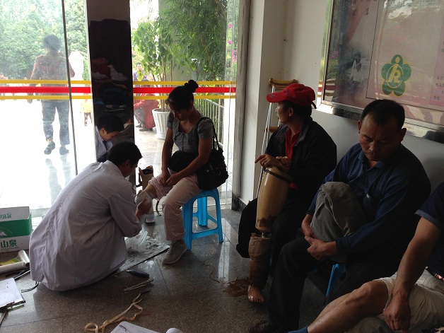 7月9日,市残联康复处龚处长带领康复处工作人员及假肢装配站的技师等一行6人来到我县,对石林县贫困残疾人申请要求安装假肢的对象进行筛查,最终从22名贫困患者中,确定符合安装假肢条件的残疾人有14人,其中有13人需要安装一只假肢、1人需要安装双腿假肢。假肢装配师为需要安装假肢的残疾人做了现场诊断,根据肢体残疾人不同情况进行了取型,整个筛查、取形过程井然有序。现场的残疾人对工作人员的细致、耐心、周到服务,从心眼里表示感激。