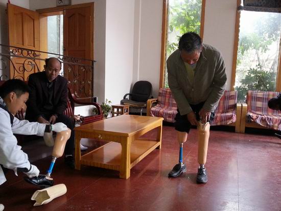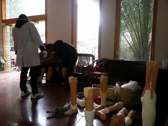 官渡区残联在2013年8月就组织下肢残疾人进行筛查,并对符合假肢装配人员进行取型、做假肢这一系列的工作后,于2014年1月13日春节来临之际,分别对7名截肢残疾人安装假肢。在安装过程中,安装工作人员对每位截肢残疾人耐心细致地进行调配,使他们穿上合适的假肢。