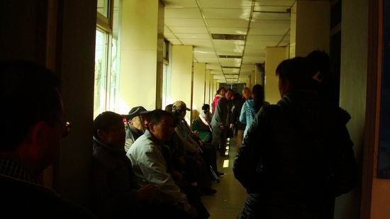 图为:机动轮椅车驾驶人员在等待体检