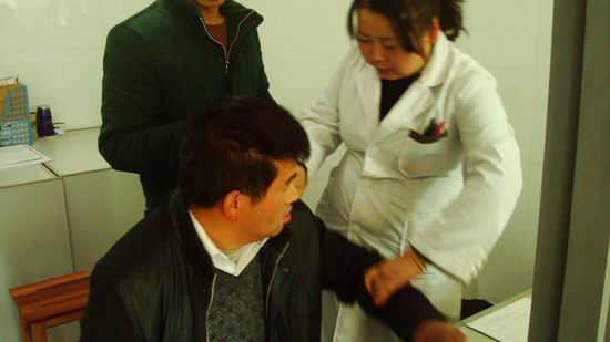 图为:医生在为车主进行体检