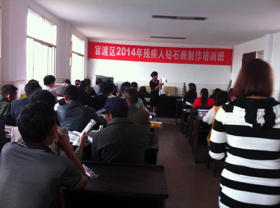 为了进一步提高残疾人的技能,帮助他们能找到适合自己的就业工作,结合残疾人的特殊情况,2014年4月30日官渡区残联在官渡区矣六街道举办了残疾人 “钻石画制作”培训班。共有60名残疾人参加这次培训。