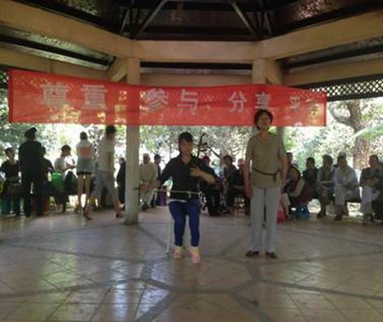 在2014年助残日到来之际,为了更好的发挥精残协会密切联系精神病人及亲友,反应他们的需求和意见,沟通精神病人与社会之间联系的作用,以“尊重、参与、分享、平等”、“关心帮助残疾人、实现美好中国梦”为宗旨,区精残协会在官渡区残联、市图书馆、金马街道办事处、东华社区居委会的大力支持下,于2014年5月16日下午在金马街道办事处东华社区东华广场组织邀请了“老来俏艺术团”、“银河艺术团”等为金马街道4个社区近50名精残病人及其亲友表演了精彩的歌、舞、乐器节目。在演出结束后,还召集精残病人及亲友进行座谈,向他们了解工作、学习、活动情况,并与他们宣传、讲解目前党的方针、政策,大家加强了沟通交流,今后能更好地融入社会。