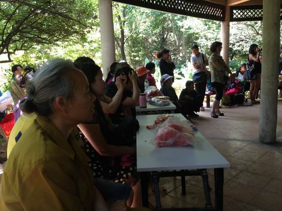 图为:精神残疾人朋友们正在观看表演