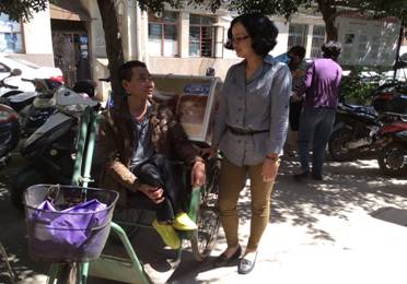图为:官渡区残联理事长(支部书记)了解残疾人的家庭情况