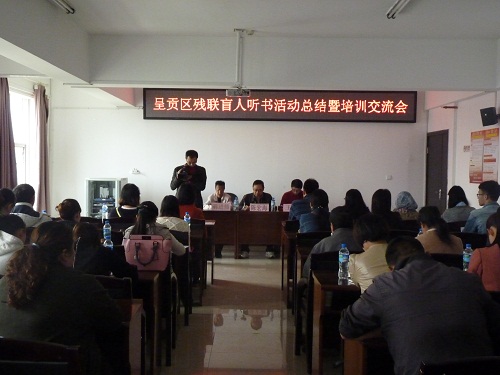 11月4日呈贡区残联组织10名盲人代表,8名大学生志愿者和23名社区残疾人志愿者召开了呈贡区残联2014年盲人听书活动总结暨培训交流会。会上区残联分管活动副理事长就盲人听书活动2013年开展以来做了工作总结,并提出了新的工作要求,他要求:大学生志愿者要继续探索创新,丰富盲人听书活动的听书内容,按时进行更新,让盲人朋友在活动中学到更多的知识;社区残疾人志愿者要及时为盲人听书机更新内容,让盲人朋友及时了解身边发生的事;区残联工作人员要加强督促落实,确保此项活动扎实有效开展,让盲人朋友精神文化生活得到满足,为盲人朋友营造一个充满人文关怀、温馨、平等的阅读环境,让更多的爱心人士一起来关注和关爱视障残疾人朋友。