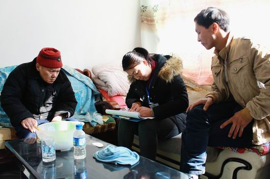 2015年1月4日,关上街道办事处各社区调查员按要求佩戴调查员证及调查所需的物品、资料到关上社区、日新社区等各位残疾人家庭进行入户调查,在调查中基本采用调查对象能够接受的通俗易懂的语言进行交流及提示性的问答。问卷结束后,将调查表的选项向残疾人复述,得到残疾人肯定的答复后,请本人签上自己的名字,调查员共同签字。完成了一户的调查登记工作后,他们又来到了另一户残疾人家中进行调查登记。他们就是这样一户一户的重复着调查入户工作,但她们每到一户残疾人家中都是认认真真的登记。对当天的调查表进行反复细致审查,减少信息的差错。