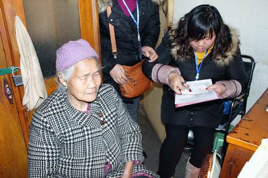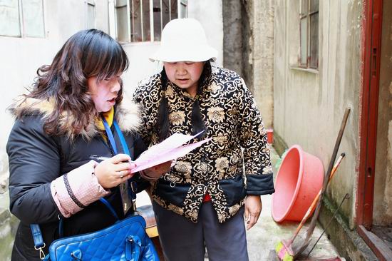 图为:调查员为残疾人做专项调查登记