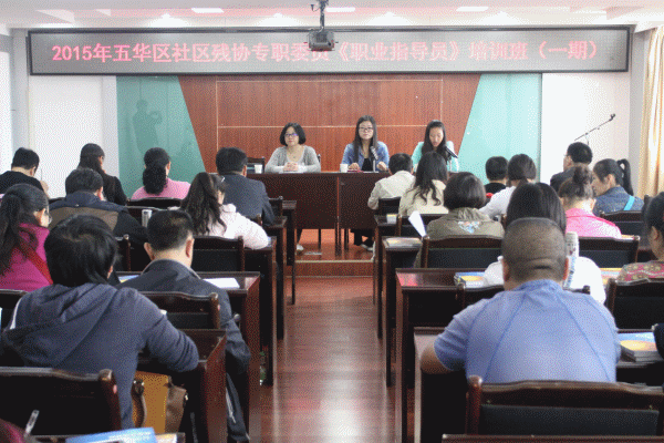 为进一步推进残疾人就业服务机构规范化建设进程,不断提升我区基层残疾人就业指导员的专业水平、服务能力,努力为残疾人和用人单位提供更加专业化、规范化的就业服务,五华区残联于2015年9月7日举办了社区残协专职委员《职业指导员》(第一期)培训班。