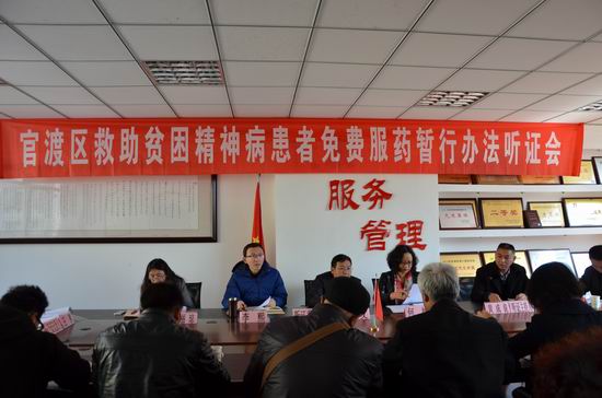 官渡区残联根据《昆明市人民政府重大决策听证实施细则》的规定,于2016年2月29日(星期一)下午2点至4点30分在官渡区残联二楼会议室举行了《官渡区救助精神病患者免费服药暂行办法(修订)(听证稿)》听证会。