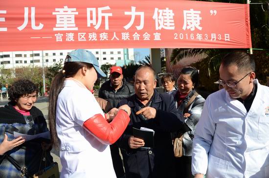 图为:官渡区残联在官渡广场组织第十七次全国“爱耳日”活动