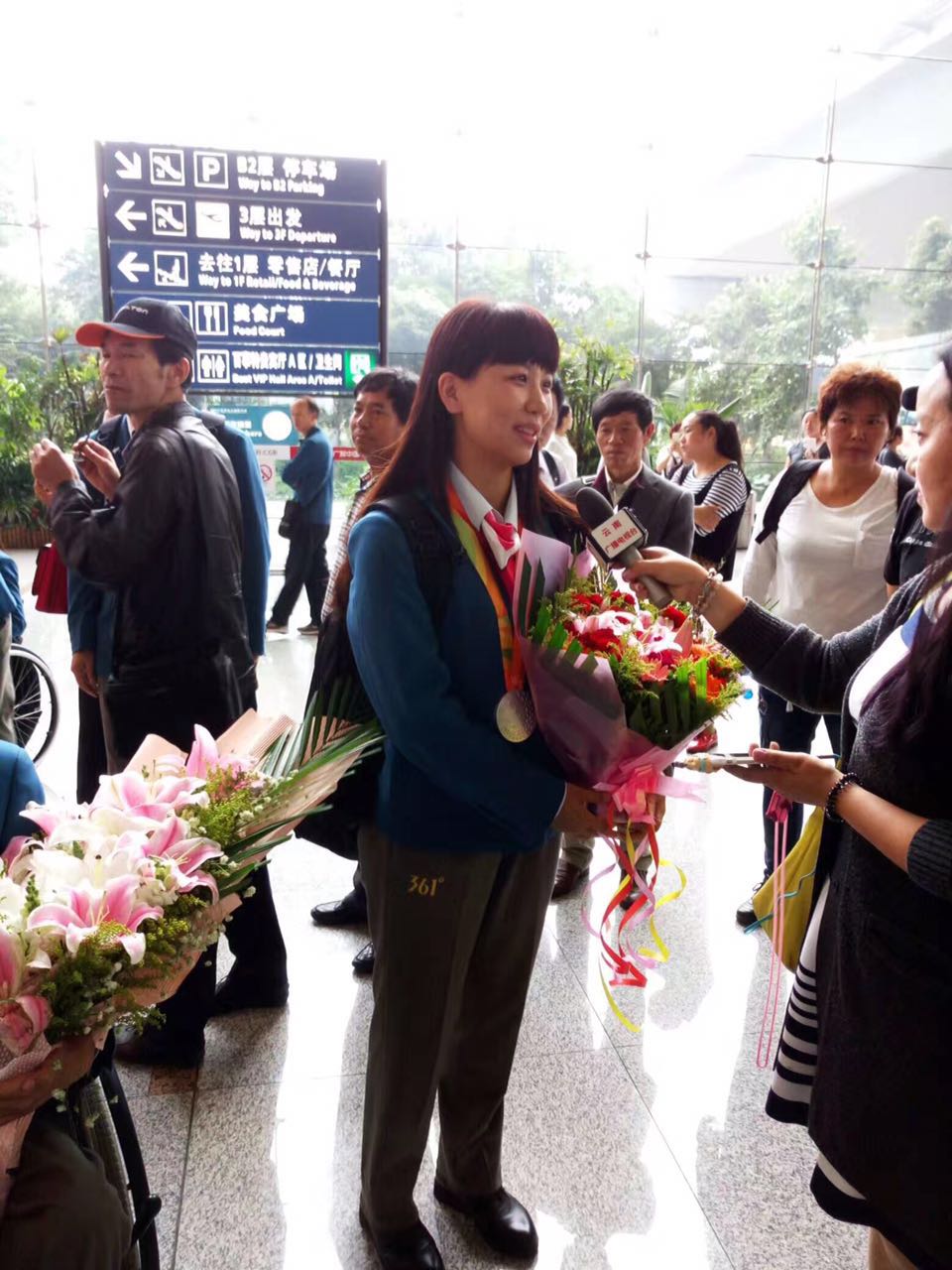 日,出征第十五届里约残奥会的云南省运动员载誉归来。县人民政府副县长黄媛、县残联理事长段瑞琪一行,到昆明长水机场喜迎坐式排球亚军残疾人运动员苏立梅夺银归来,并对她取得优异的成绩表示祝贺。