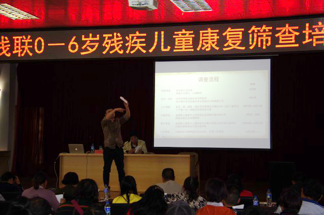 培训中省残联康复中心项目部主任尚燕翼和社区康复部主任、康复培训师廖鹏分别对我区残联专干和残疾人联络员150人进行了的培训,他们现场对如何筛查疑似残疾人儿童进行了详细讲解,对一些康复术语进行了详细的指导,从而为我区残联顺利完成此次筛查工作打下良好基础。