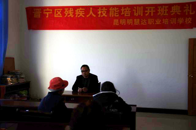 在开班仪式上晋宁区残联理事长王兴华同志鼓励残疾人朋友要珍惜机遇、认真学习、自强自立、实现梦想。