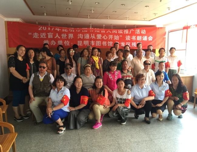 本次我们邀请了昆明市图书馆、昆明市文化宫等助残志愿者们,专业朗读者柳溪、赵博、吉玉倩等几位老师为现场的各位残疾朋友朗诵了《海燕》、《心田上的百合花》、《回家去问妈妈》等优秀诗歌、散文,深受残疾朋友的喜爱,现场还有我们的残疾朋友王峰朗诵了《七律长征》、王家盛口琴演奏《可爱的姑娘》、白梅演唱了《相亲相爱一家人》,现场气氛活跃,掌声不断,本次活动获得圆满成功,残疾朋友们非常开心,踊跃参与。希望通过开展活动带动广大盲人读者多读书,把读书当做生活的一部分,崇尚文明、坚强自信、积极乐观。使他们以更健康积极乐观的心态去看待生活,勇敢面对人生的挫折。.jpg)