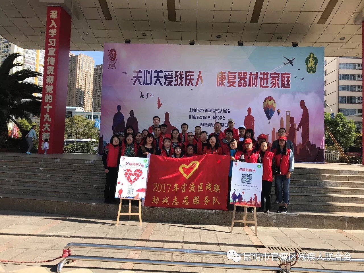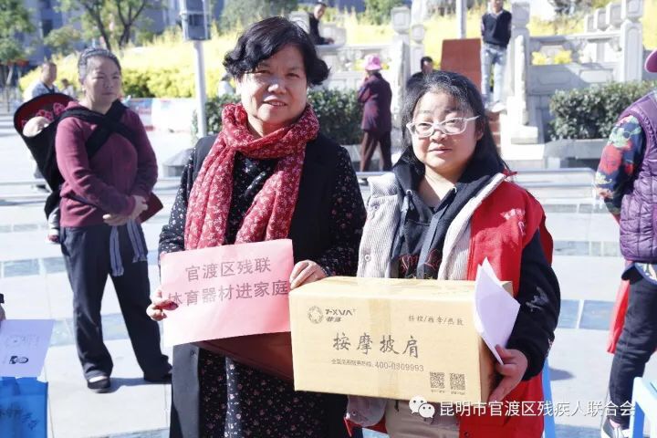 在中国共产党第十九次全国代表大会胜利闭幕,全国迅速掀起深入学习党的十九大精神并热议党的十九大的时刻,也是在官渡区全区上下深入学习贯彻党的十九大精神,全力攻坚四季度,圆满完成各项工作年终目标的冲刺之际!11月15日上午,官渡区残联开展官渡区康复体育器材进家庭活动。活动特邀昆明市残联、各街道办事处残联理事长和专职委员以及关上社区专职委员、联络员和残疾人共132人参加。区残联的志愿者现场为残疾人朋友们就体育器材的使用进行模拟展示,并由志愿者指导残疾人使用器材,对特殊残疾人没来现场的,区残联将和关上街道、社区志愿者积极配合第三方圆梦助残有限公司,入户进行实物配置,确保器材配置与残疾人调查的实际需求零差错。此次活动为符合条件的120名残疾人家庭精准的配置了六类体育器材,其中:踏步机29台、健身器套装7个、按摩器60个、哑铃3个、柔力球拍套装1付、迷你健身车20台。“康复体育设施进家庭”活动的开展,一是为残疾人参与体育健身创造了条件;二是为不易走出家门的重度残疾人提供面向家庭、面向残疾人个人的康复体育进家庭服务;三是将康复体育器材、康复体育方法、康复体育服务送到残疾人家庭;四是满足了不同残疾人康复体育的需求。
