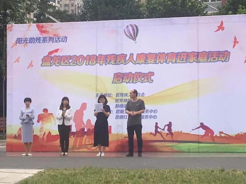 8月2日,盘龙区残联在桃源广场举行2018年残疾人康复体育进家庭活动启动仪式。来自市、区残联,区文体旅游局,鼓楼街道办事处的相关领导以及助残志愿者,助残社会公益组织,残疾人代表等100余人参加了此次活动。