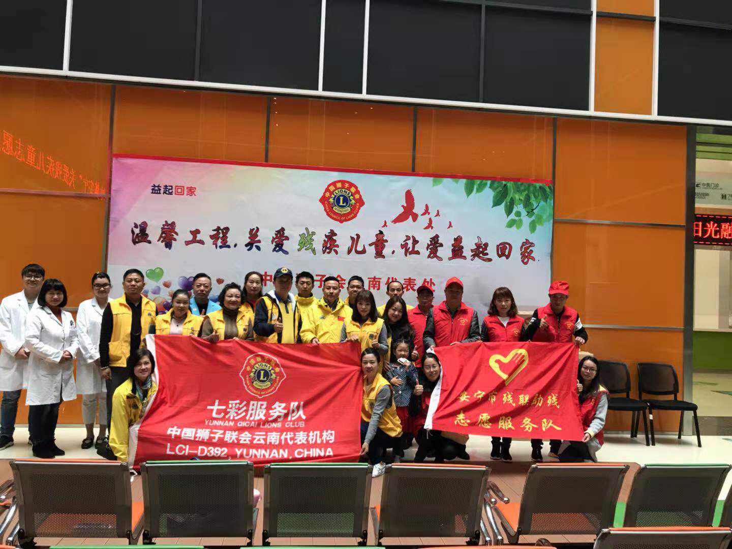 为进一步推动社会助残扶残意识的提升,倡导和广泛营造全社会文明和谐,让残疾儿童得到社会更多的关注与关爱,经安宁市扶残助残志愿者发起,中狮联云南七彩服务队响应并感召爱心人士参与,2018年10月13日上午,在昆明市残疾儿童定点康复机构安宁市鑫湖医院开展了“温馨工程——益起回家”主题的“阳光融合——筑梦安宁”关爱残疾儿童志愿服务活动。
