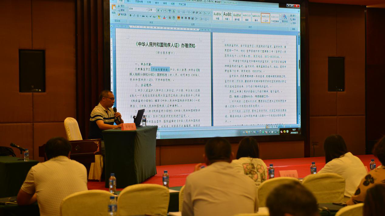 为进一步做好2019年呈贡区残疾人基本服务状况和需求信息数据动态更新工作,提高全区残疾人工作者业务水平,更好的为全区残疾人服务,呈贡区残联于2019年8月13日组织呈贡区6个街道残联理事长、42个社区残疾人专职委员及社会职能剥离移交的洛羊、马金铺、大渔3个街道、28个社区残联专干、区残联全体人员共90人举办了呈贡区残疾人动态更新暨业务培训会。