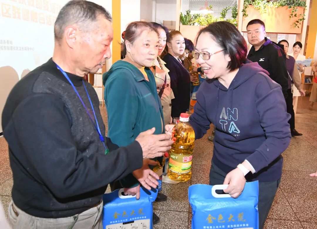 活动中穿插的“健康知多少”有奖问答环节,围绕饮食健康、公共卫生服务、家庭医生签约等实用知识展开,居民们踊跃参与,答对的观众还获得了家用急救包。现场还设置“巧手寄深情”文化体验区、健康义诊区、政策咨询区等多个服务点位,并贴心准备重阳节蛋糕供居民品尝,整场活动洋溢着温馨、欢乐的节日氛围。
