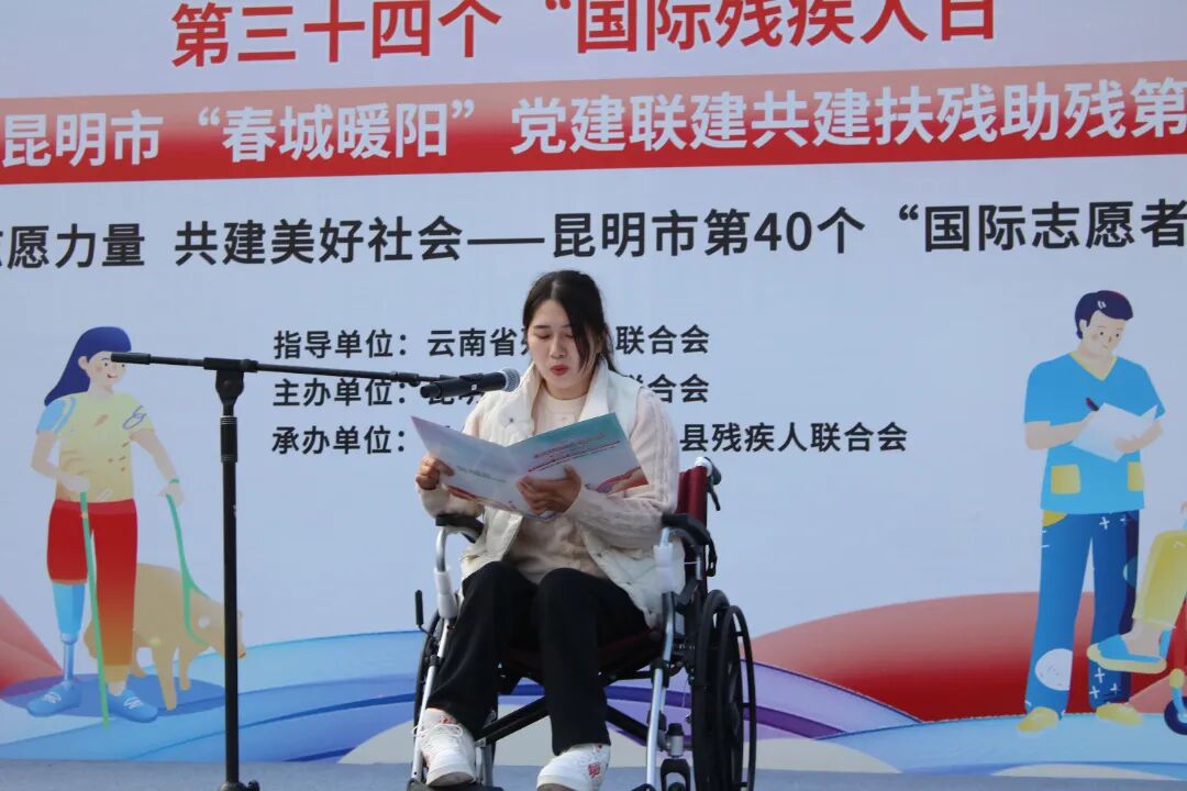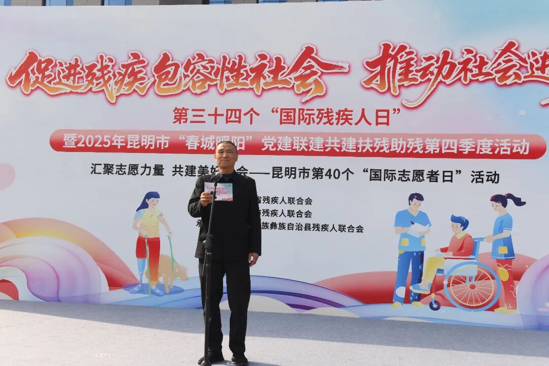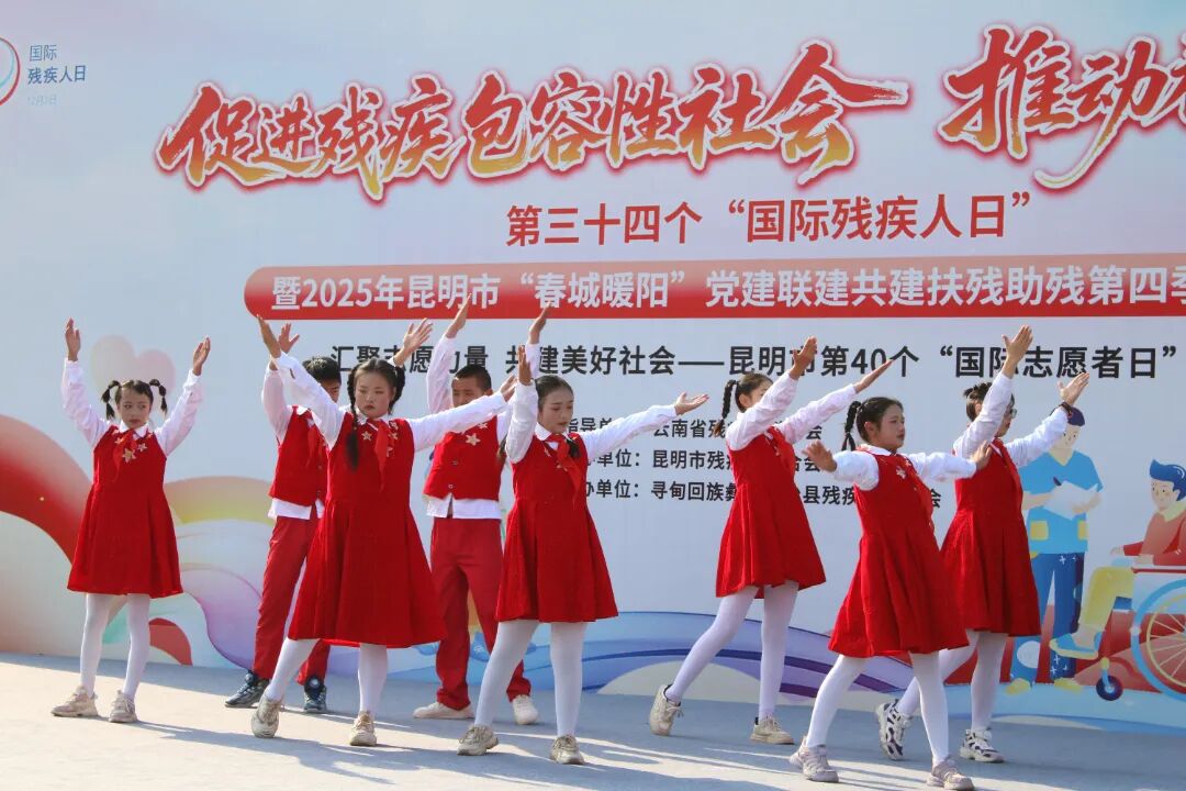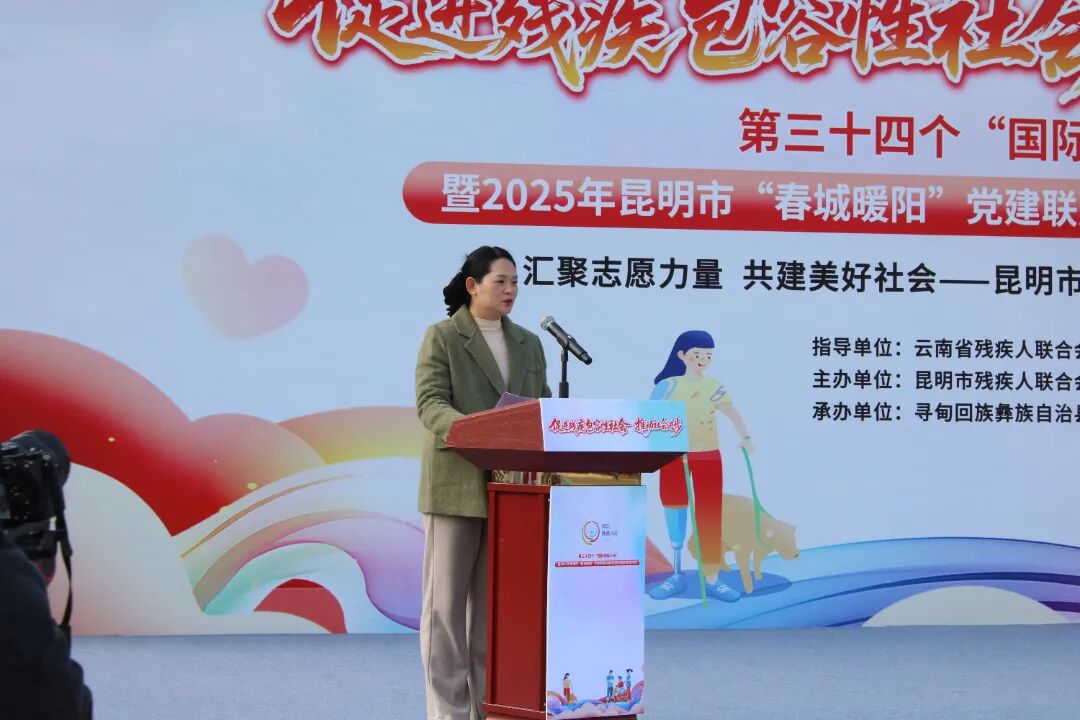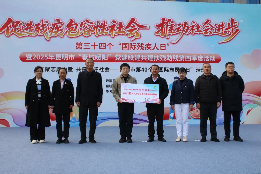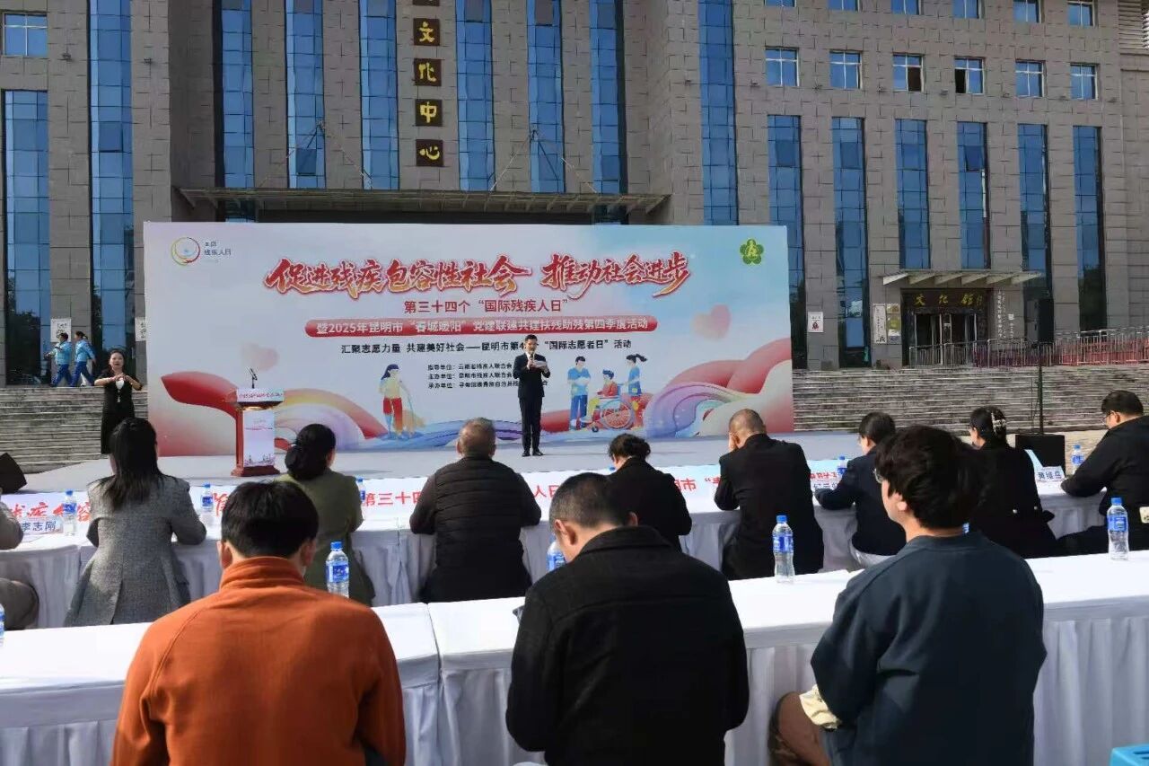 12月2日,昆明市第34个国际残疾人日暨2025年“春城暖阳”党建联建共建扶残助残第四季度活动在寻甸县民族团结进步广场温情启幕。本次活动由云南省残联、昆明市委市直机关工委指导,昆明市残联主办,寻甸县残联承办,以“促进残疾包容性社会 推动社会进步”为主题,依托“春城暖阳”扶残助残党建联盟平台,整合各级党组织资源,通过“七个一”系列活动为残疾人送上关怀与支持,推动形成全社会扶残助残的良好风尚。