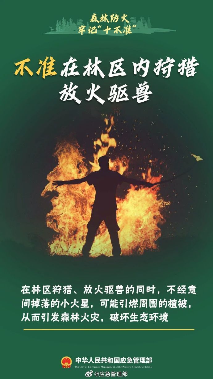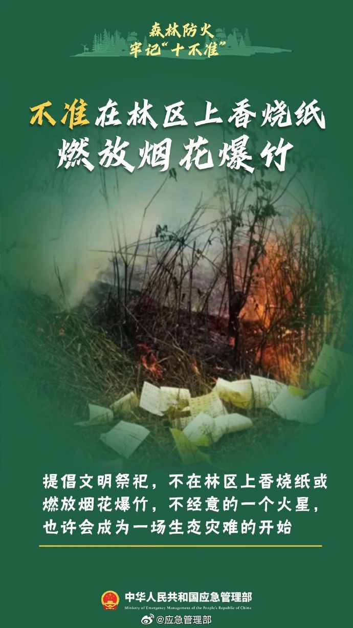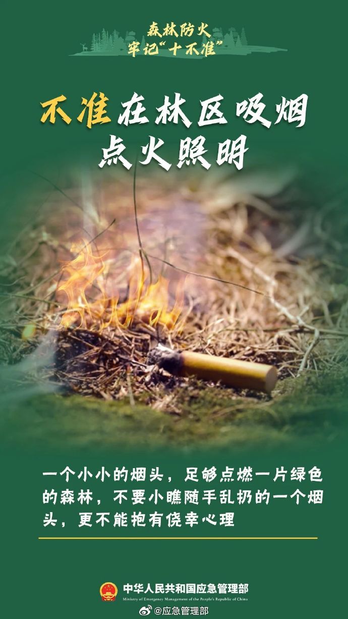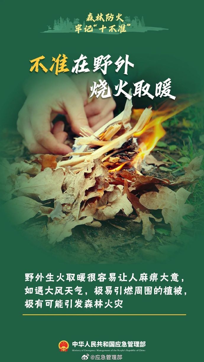 冬季天干物燥,森林火险等级偏高,进入山林时,应留心各种防火细节。森林资源是我们大家共同的财富,严格遵守森林防火 “十不要”,共同守护绿水青山↓